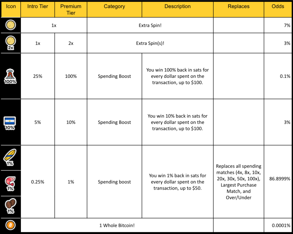 This is just a summary. The purchase wheel is currently only available to Fold Cardholders. The wheel is available for spinning after each purchase made with the Fold Card (currently excluding ACH), subject to certain exclusions.